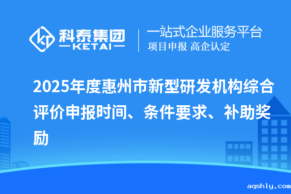 2025年度惠州市新型研发机构综合评价申报时间、条件要求、补助奖励